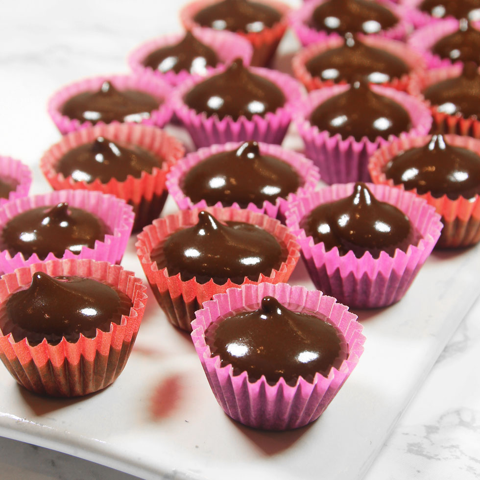 - Spritsa eller häll ned chokladen i formarna. Låt chokladen stelna i kylen.